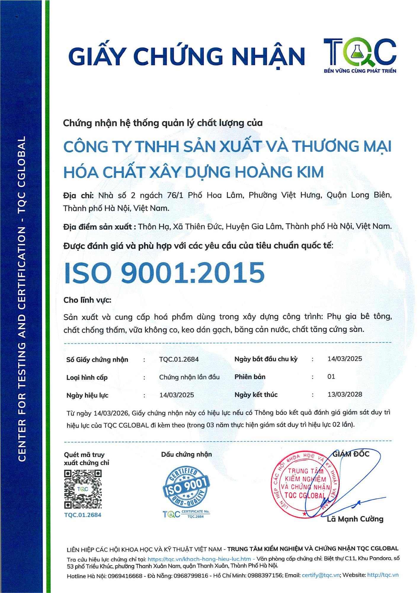 CHỨNG NHẬN HỆ THỐNG QUẢN LÝ CHẤT LƯỢNG 9001:2015