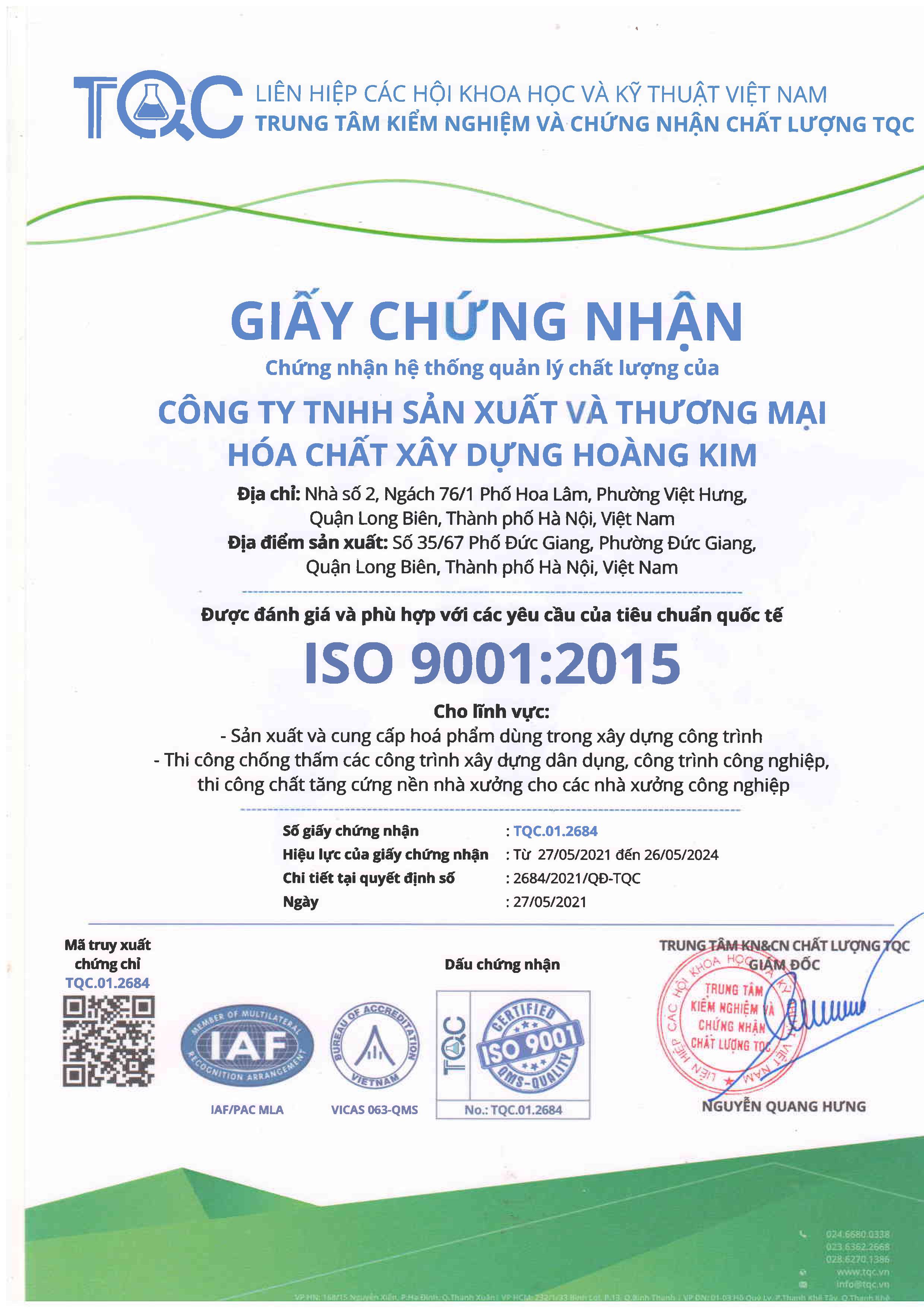 Công ty TNHH Sản xuất và Thương mại hóa chất Xây dựng Hoàng Kim Là một doanh nghiệp hoạt động trong lĩnh vực: Nghiên cứu, sản xuất và cung cấp các loại sản phẩm chống thấm, phụ gia bê tông cho ngành xây dựng….với giá trị cốt lõi “Thương hiệu tạo niềm tin”. Công ty Hoàng Kim ra đời với sứ mệnh phục vụ khách hàng đề cao dịch vụ tốt nhất, đưa ra những giải pháp tối ưu nhất với những sản phẩm chất lượng và giá cả hợp lý nhất. Năm 2020 đánh dấu sự có mặt của thương hiệu HK trên thị trường.